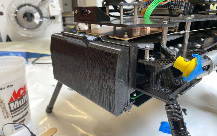 One of the biggest challenges was to design the body for the drone while not altering the drone's delicate instruments and high end components.